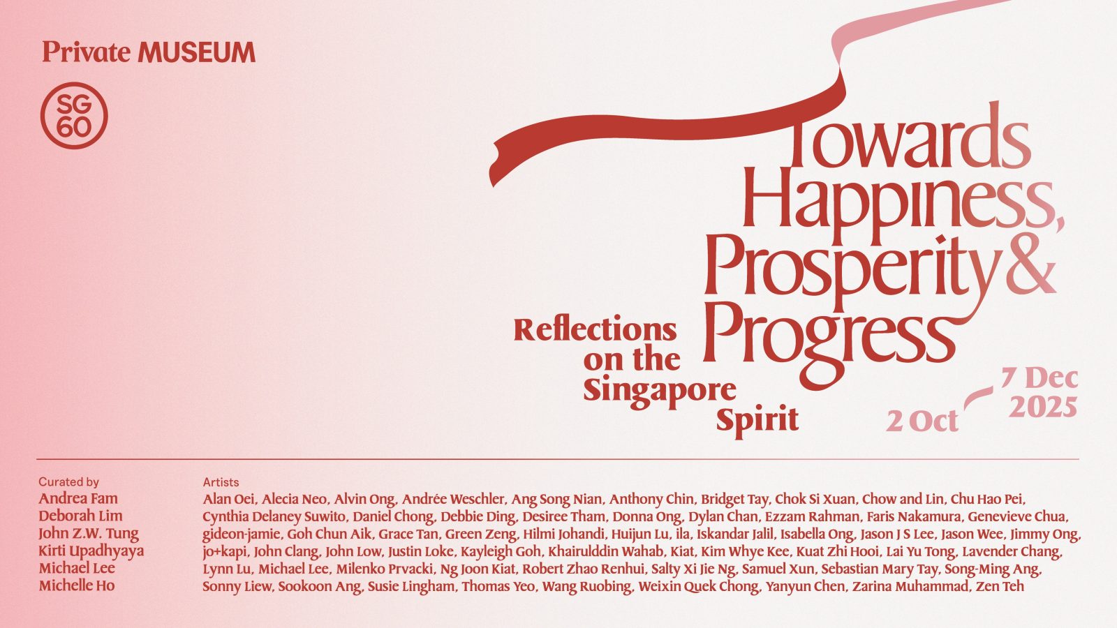Towards Happiness, Prosperity & Progress: Reflections on the Singapore Spirit is the final instalment of The Private Museum’s 2025 programming—offering a fitting closure to a year of artistic and cultural exploration.