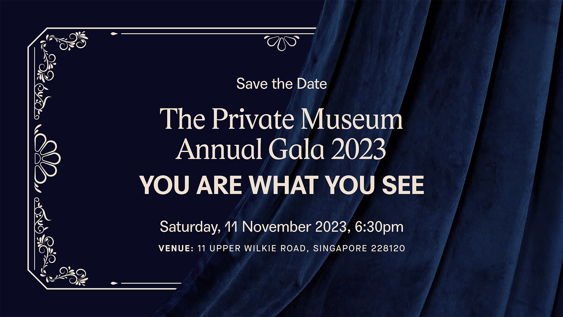 The Private Museum Annual Gala 2023 aims to raise funds to support our ongoing operations and programmes. In celebration of our Annual Gala, the theme is You Are What You See, encapsulating the profound impact art can have on our lives. This year, we will be holding our Annual Gala at 11 Upper Wilkie Road. Rich in history, this significant building that we now call our new home gives us the platform for more room to showcase art, more opportunities to collaborate, and more stories to tell.