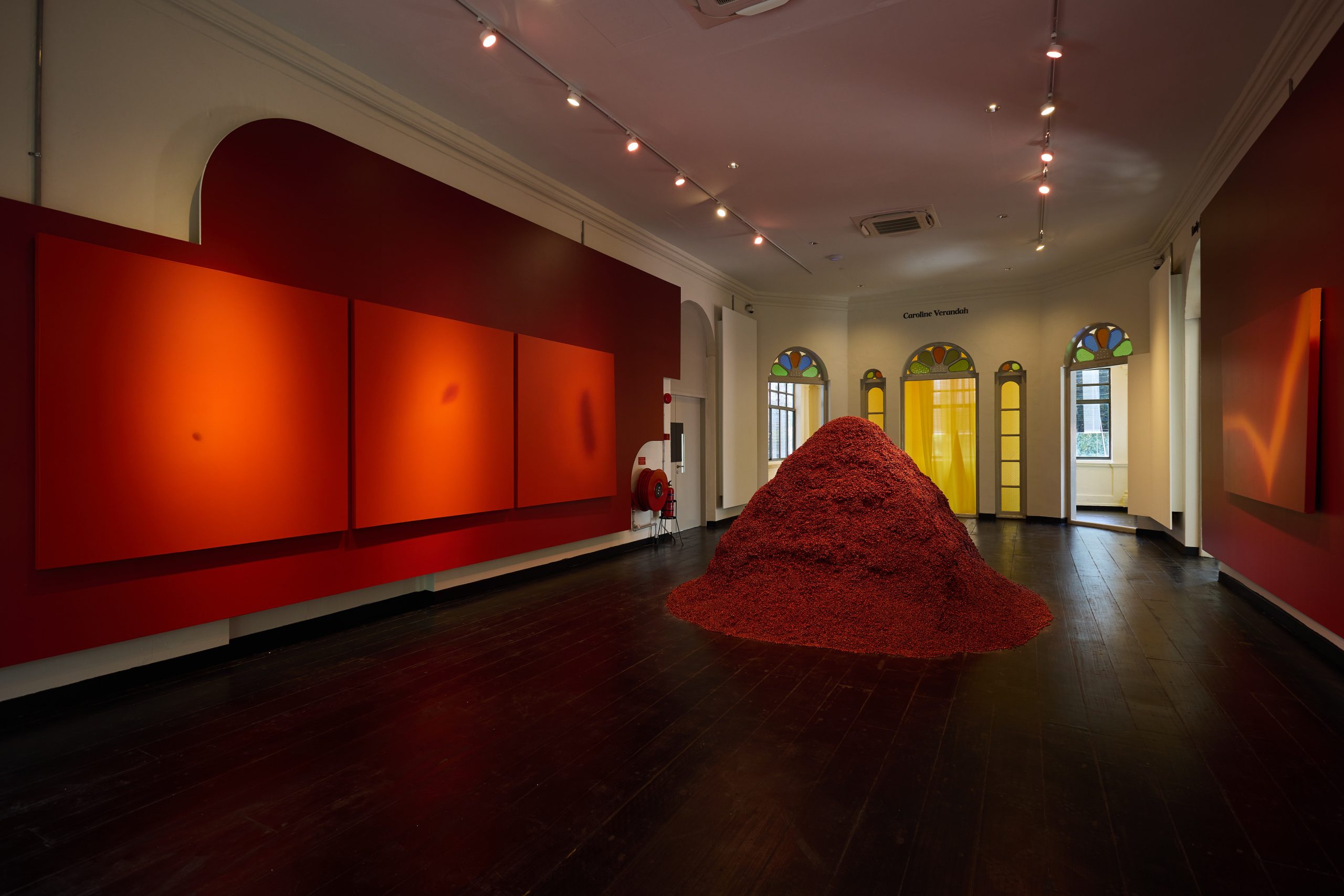 Inspired by the Hindu cosmological notion of cyclical time, Dancing with the Cosmos organises the artworks not chronologically but by colour, allowing visitors to witness the diverse yet interconnected nature of Nahappan’s practice. Nature, rituals, time and space are themes that have long been part of Nahappan’s works and are also encapsulated throughout the exhibition. Each intimate space reflects specific colours that take prominence at various periods of Nahappan’s practice, representative of a diversity of themes and a recurrence of Nahappan’s interests over an expanse of time.
